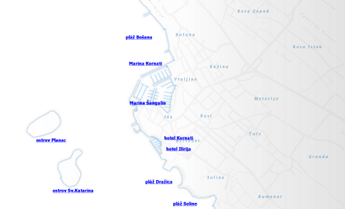 Přibližně 3km od centra Biogradu se nachází ještě jedna překrásná písčitá pláž obklopená borovým hájem. Na pláž se dostanete pěšky od osady Kumenat, autem nebo lodičkou, kterou si můžete pronajmout na plaži Soline i Dražica. |